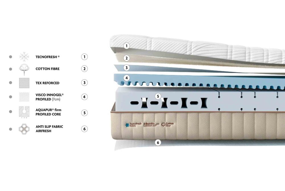 7 cm storio viskolastinis profiluotas Innogel® atminties putų sluoksnis pagerina prisitaikymą, suteikdamas