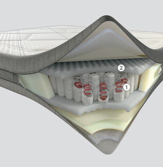 Išorinė spyruoklė užtikrina minkštą komfortą, o vidinė – giluminę atramą, taip sukuriant pažangų, subalansuotą ir progresyvų komfortą.
