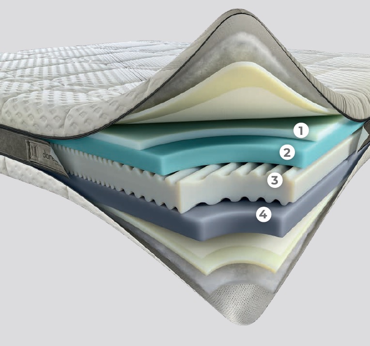 Dinamiškas reagavimas, optimalus vėdinimas ir kalibruotas komfortas – tai tik keletas privalumų, kuriuos Myform medžiagos suteikia produktui, žymiai pagerindamos miego kokybę. Keletas Myform sluoksnių veikia sinergiškai, užtikrindami tikrai unikalią komforto lygį.