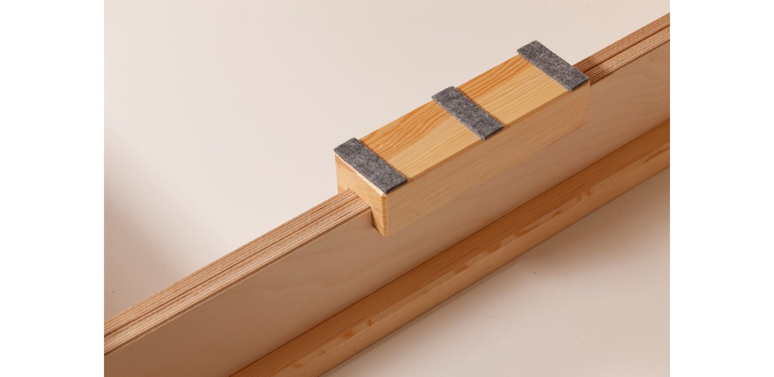 Vieta, kur remiasi grotelės, yra paminkštinta specialia minkšta medžiaga (veltiniu), todėl grotelės "gulasi" minkštai ir nekelia jokio garso.