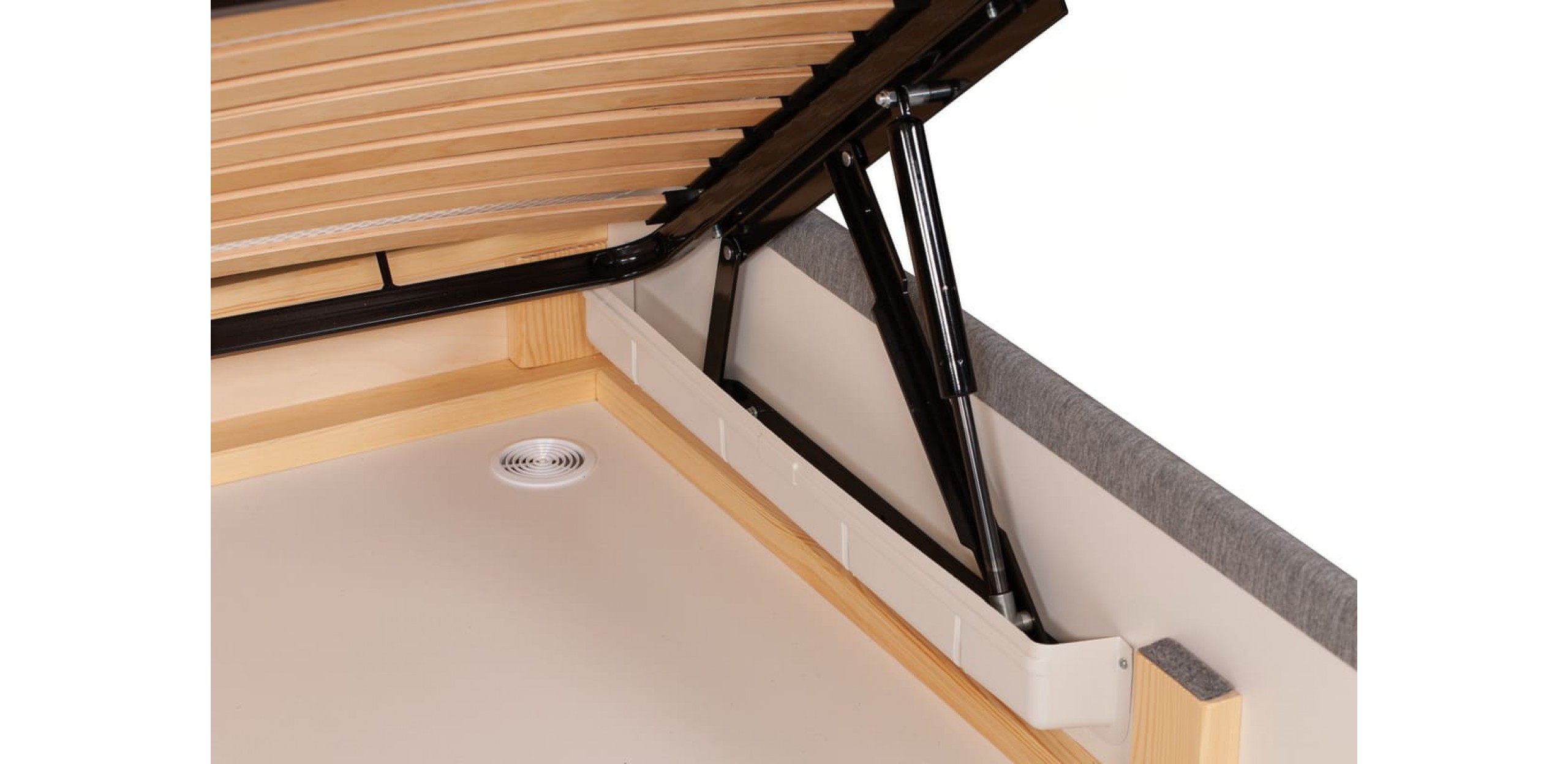 Grotelių pakėlėjai veikia labai tyliai ir sklandžiai. Pakėlėjų stiprumas parenkamas pagal čiužinio svorį.